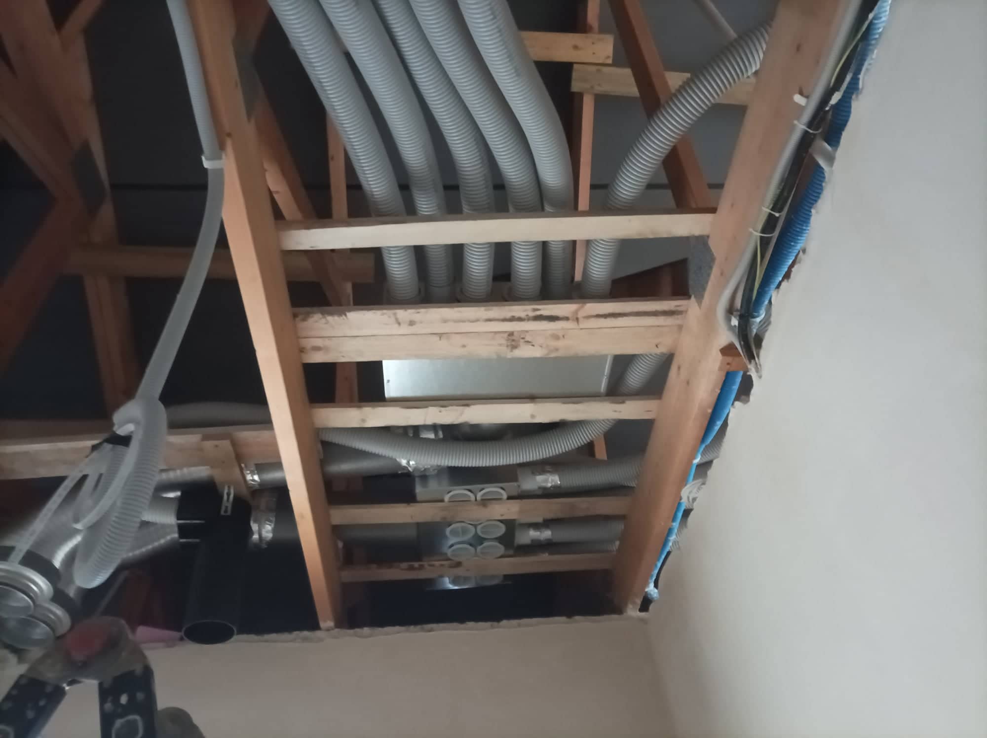 Sie installieren einen Rekuperator in Ihrer Wohnung. Der Rekuperator ist das Herzstück, die Rekuperationseinheit mit dem Wärmerückgewinnungstauscher. Der Rekuperator saugt die Luft in zwei Richtungen gleichzeitig ab. Der erste Luftstrom ist kalte und saubere Luft (hoffentlich, aber das ist kein Problem für den Rekuperator), die von außerhalb des Gebäudes angesaugt wird. Der zweite Strom ist warme, aber schmutzige, abgestandene und feuchte Luft, die durch Anemostaten - runde Gitter an der Decke und an den Wänden - aus den Innenräumen angesaugt wird. Diese beiden Luftströme treffen im Wärmetauscher, d.h. im Rekuperator, aufeinander, aber sie vermischen sich nicht, da sie jeweils durch einen separaten Kanal im Rekuperator fließen! Die warme und verschmutzte Luft strömt durch den Wärmetauscher und gibt ihre Wärme im Inneren ab, während die kalte und saubere Außenluft diese Wärme wieder aufnimmt. Vom Rekuperator gehen Lüftungskanäle mit meist unterschiedlichen Durchmessern ab, durch die die Frischluft im Haus verteilt und die Schmutzluft nach draußen abgeführt wird.